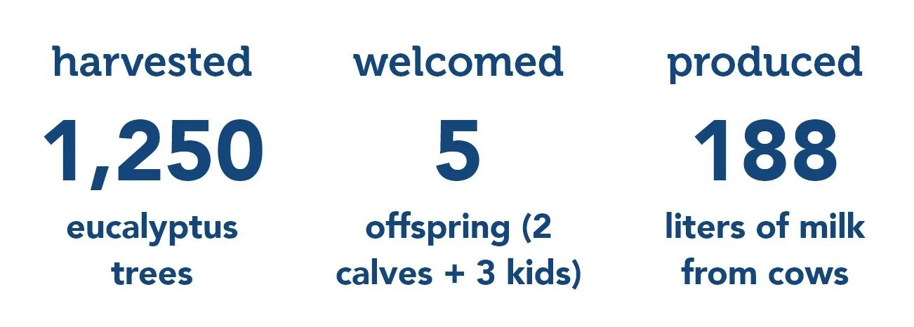 1,250 eucalyptus trees were harvested for the construction of the upper kitchen, makeshift shelter for the Kalina block constructors and the new Gospel Messengers Church Bwasandeku.